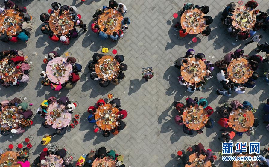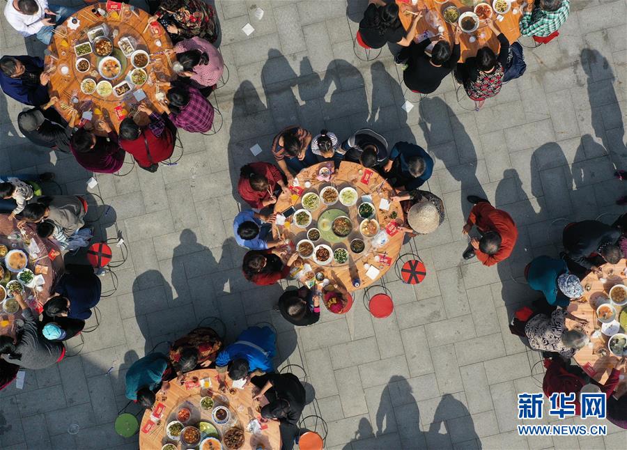 11月2日,南京仙林街道仙林新村社區(qū)居民參加千家宴(無人機(jī)拍攝)。11月2日至3日,江蘇南京仙林街道仙林新村社區(qū)舉辦“一家親”千家宴活動。在社區(qū)精心準(zhǔn)備的基礎(chǔ)上,居民們帶上自己的拿手菜,歡聚一堂,其樂融融。仙林新村是一處拆遷安置房小區(qū),多年來,社區(qū)通過網(wǎng)格化管理等方式,鼓勵和引導(dǎo)居民開展自治,形成了良好的社區(qū)鄰里關(guān)系。 新華社記者 季春鵬 攝