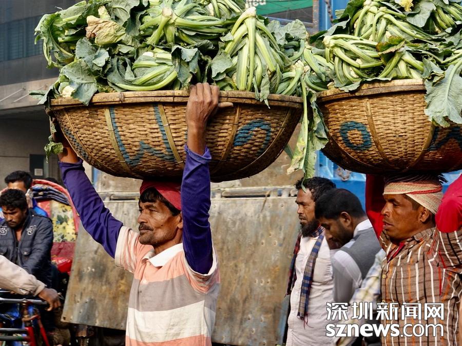 深圳新聞網(wǎng)2019年1月8日訊在孟加拉,無論城市,還是鄉(xiāng)下,人們頭頂重物的情景,確實(shí)是無處不在的。李仁奇攝