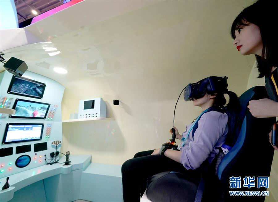 11月5日,觀(guān)眾在第二屆進(jìn)博會(huì)中國(guó)館“深海勇士”體驗(yàn)倉(cāng)內(nèi)體驗(yàn)。新華社記者陳建力攝