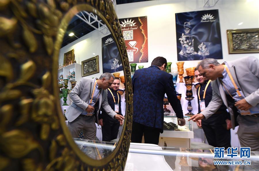 11月5日,伊朗參展商在第二屆進博會服務貿易展區(qū)的展臺前忙碌。新華社記者尹炣攝