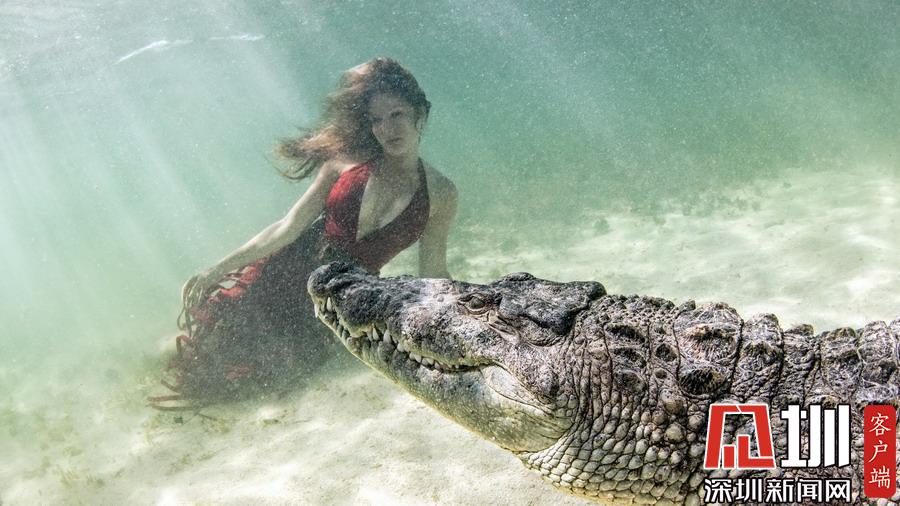 2018年7月16日?qǐng)?bào)道(具體拍攝時(shí)間不詳),在墨西哥Chinchorro Banks水下,這些鱷魚們艷??刹粶\,它們有機(jī)會(huì)同美女模特在水下同游。鏡頭里,它們露出獠牙鋸齒,看上去就像是開(kāi)心大笑的樣子,想必是和美女同游才如此樂(lè)得合不攏嘴。而能敢于直面這些兇殘的肉食性動(dòng)物,這些美女模特也顯得是勇氣十足,令人欽佩。攝影師Ken Kiefer拍攝了這些震撼畫面。