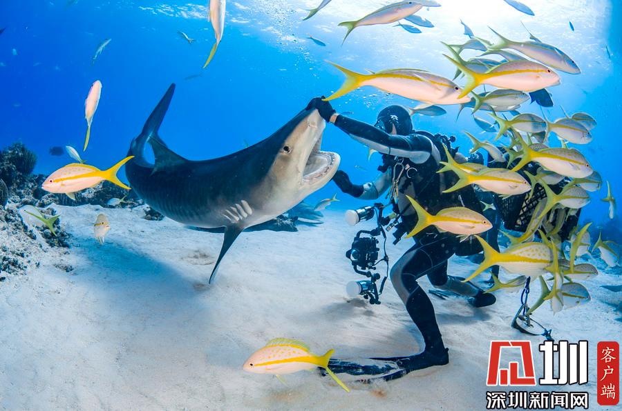 2019年1月28日?qǐng)?bào)道(具體拍攝時(shí)間不詳),虎鯊向來是出了名的兇猛,但這組照片中的虎鯊們似乎變成了粘人的萌寵一般。鏡頭下,它們開心又友好地同潛水員們互動(dòng)著,享受潛水員輕撫肚皮,緩緩地在潛水員周圍游動(dòng)。攝影師在巴哈馬群島老虎灘水域拍下了這組照片。