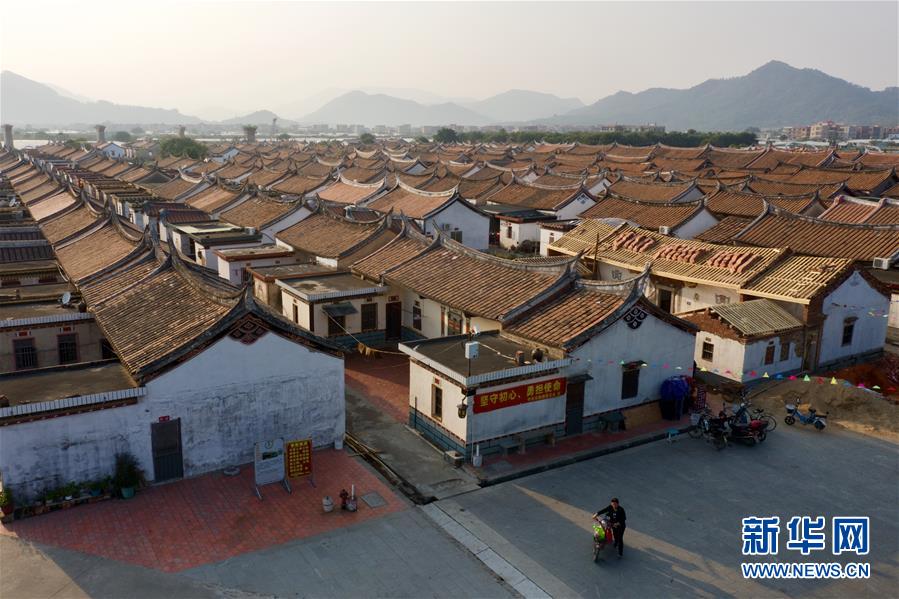 11月14日空中俯瞰閩南水上古村落——埭美村(無人機拍攝)。新華社記者姜克紅攝