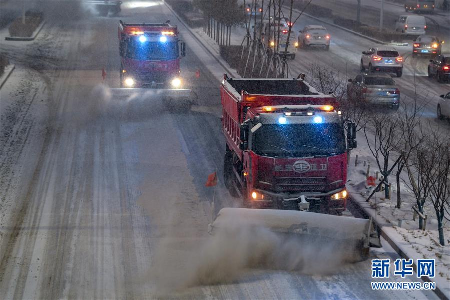11月17日,一輛環(huán)衛(wèi)清雪車在作業(yè)。 新華社記者 顏麟蘊(yùn) 攝