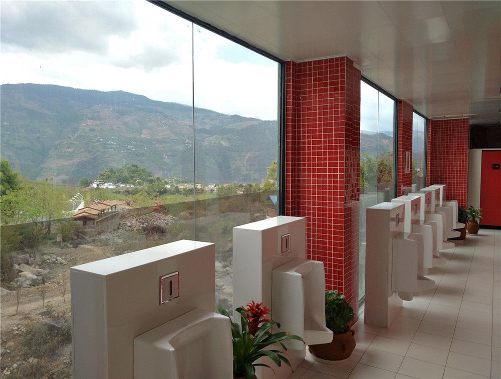 2017年4月7日,云南省大理州石門關(guān)景區(qū)的透明廁所。廁所外觀落地玻璃采用單透膜,讓游客邊上廁所,還可以邊欣賞景區(qū)優(yōu)美的風(fēng)景。李明/視覺(jué)中國(guó)