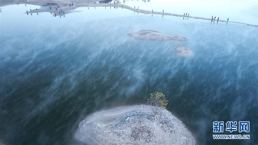 這是11月14日無人機拍攝的安徽黟縣奇墅湖晨景。新華社記者張端攝