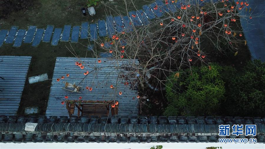 這是11月15日無(wú)人機(jī)拍攝的安徽黟縣宏村一家民宿的院落。新華社記者張端攝