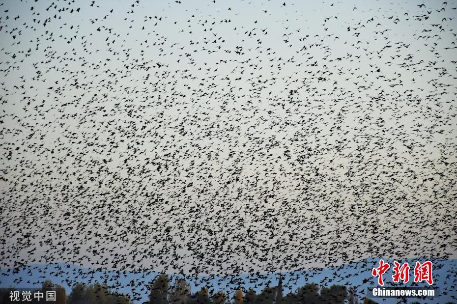 近日,土耳其穆什,椋鳥群遷徙途中,黑壓壓一片遮擋天空。圖片來源:視覺中國(guó)