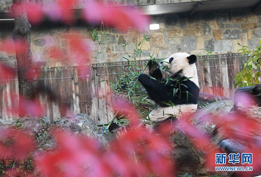 11月19日,在美國華盛頓的美國國家動(dòng)物園,大熊貓“貝貝”享用啟程回國前的最后一頓“早餐”。 新華社記者 劉杰 攝