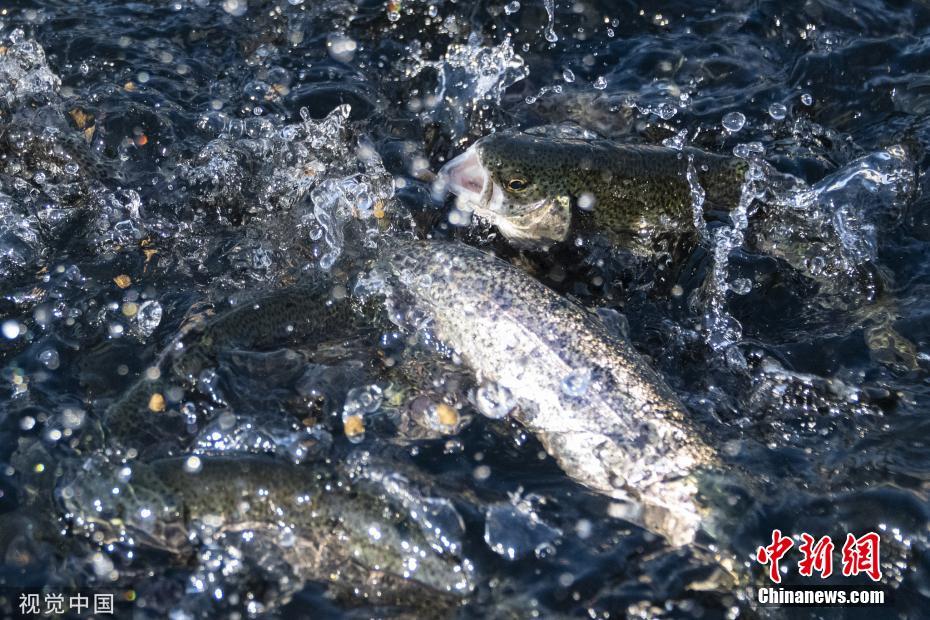 當?shù)貢r間2019年11月17日,美國加州薩克拉門托,實拍洄游產(chǎn)卵的鮭魚。