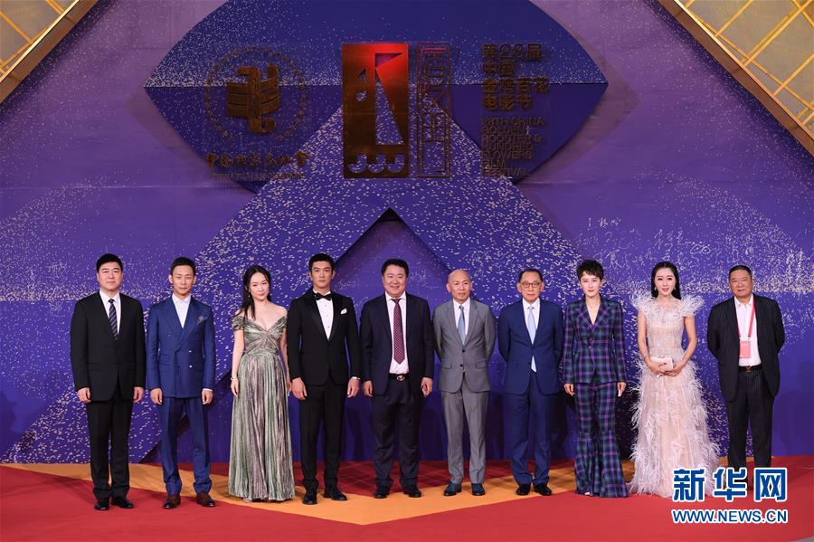 11月23日,電影《紅海行動》主創(chuàng)人員在紅毯儀式上。當日,第28屆中國金雞百花電影節(jié)紅毯儀式在福建廈門舉行。新華社記者姜克紅攝