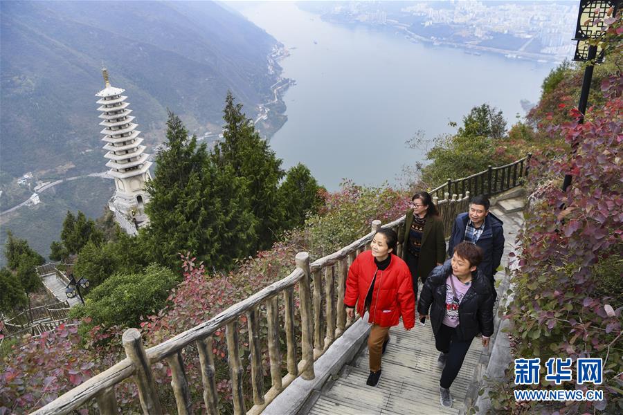 11月23日,游客在位于長江巫峽段的巫山文峰景區(qū)游覽。初冬時節(jié),位于重慶巫山縣境內的長江巫峽段呈現出一江碧水東流、兩岸層林盡染的秀美景象。新華社記者王全超攝