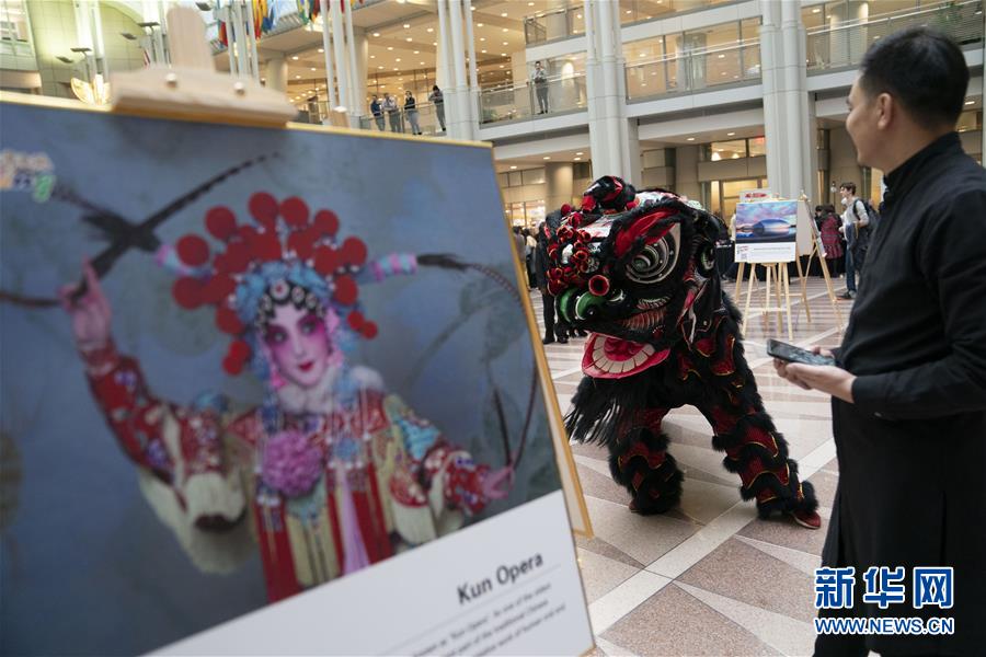 11月22日,在美國華盛頓,演員在“北京日”文化廟會活動上表演舞獅。作為中國北京和美國首都華盛頓締結(jié)友好城市35周年慶?;顒拥囊徊糠?,“北京日”文化廟會22日在華盛頓羅納德·里根大廈和國際貿(mào)易中心舉行。新華社記者劉杰攝