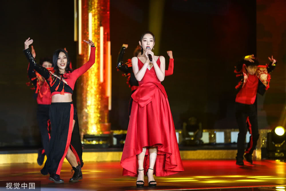 蔣夢婕一身紅裝美麗迷人。