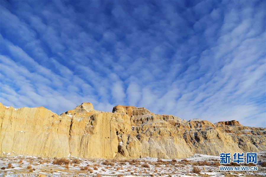 11月26日拍攝的新疆福??h烏倫古湖海上魔鬼城景區(qū)美景。福海縣烏倫古湖海上魔鬼城景區(qū)位于新疆阿勒泰地區(qū)福??h吉力湖東岸,有著獨特的雅丹地貌和水域景觀,是當?shù)刂穆糜蝿俚?。新華社記者沙達提攝