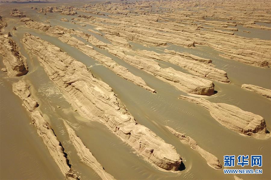 這是5月8日無人機拍攝的敦煌雅丹國家地質(zhì)公園雨后景色。新華社記者范培珅攝