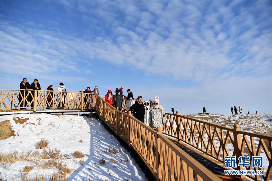 11月26日,來自全國(guó)百家旅行社的旅游業(yè)界人士在新疆福海縣烏倫古湖海上魔鬼城景區(qū)參觀。新華社記者沙達(dá)提攝