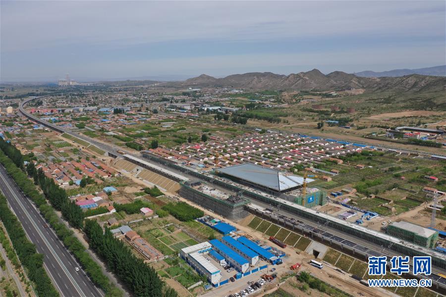 建設中的宣化北站(5月30日無人機拍攝)。京張高鐵宣化北站位于河北省張家口市宣化區(qū)北盆兒窯村附近,京張高鐵線路北側(cè),目前該站已完成站房主體結(jié)構(gòu)、鋼結(jié)構(gòu)、金屬屋面、清水混凝土雨棚結(jié)構(gòu)等施工內(nèi)容,全面進入裝飾裝修施工階段。新華社記者邢廣利攝