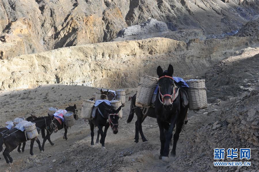 12月6日,騾馬隊馱負(fù)工程物料前往山頂塔基施工現(xiàn)場。新華社記者侯捷攝