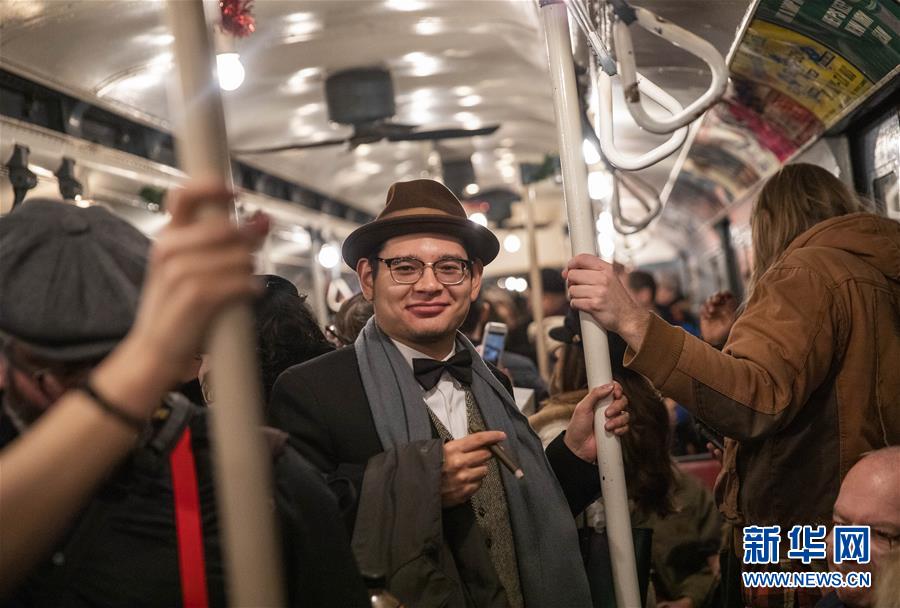 12月8日,在美國紐約,人們搭乘“懷舊專列”。每年感恩節(jié)到新年之間的星期日,紐約地鐵都會用1932年至1977年間使用的老式列車在運營的線路上開行特別的“懷舊專列”,人們穿戴舊時服飾專程前來搭乘,體驗時光回溯的奇妙旅程。新華社記者王迎攝