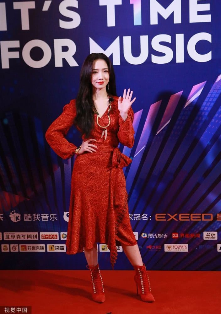 孟美岐身穿大紅色長裙搭配波浪卷發(fā),大走港風(fēng)美艷動(dòng)人。