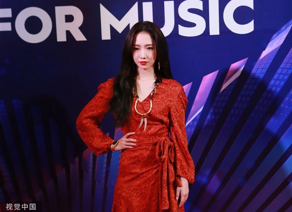 孟美岐身穿大紅色長裙搭配波浪卷發(fā),大走港風美艷動人。
