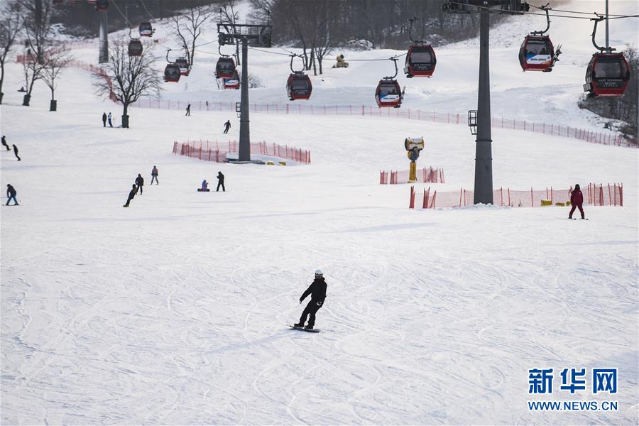 12月13日,滑雪愛好者在吉林市萬科松花湖度假區(qū)滑雪。新華社記者 張豪夫 攝