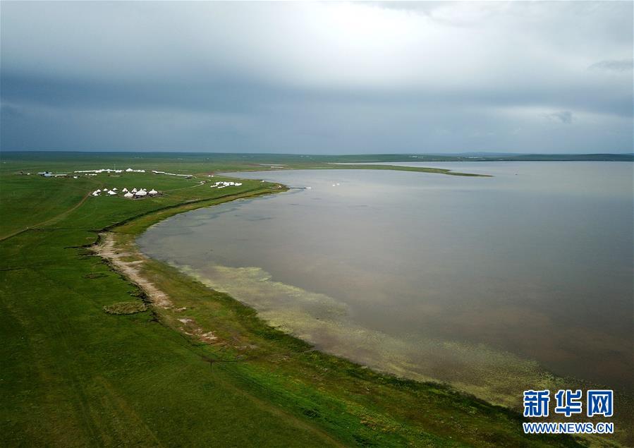 8月27日無人機(jī)拍攝的呼倫貝爾草原呼和諾爾湖。新華社記者任軍川攝
