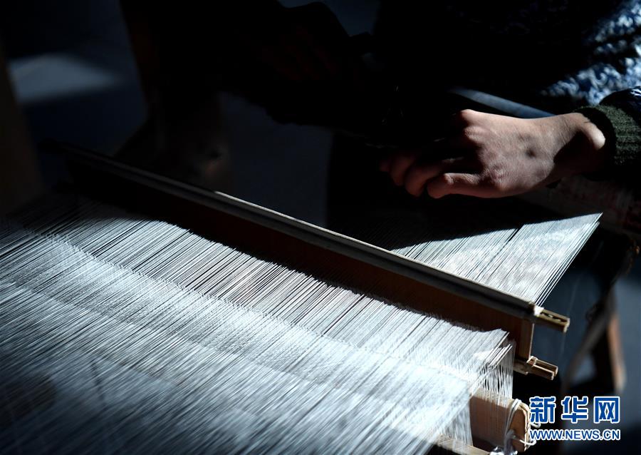 12月14日,在河北定州緙絲傳習(xí)基地,工作人員在制作緙絲。 新華社記者 王曉 攝