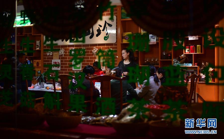 李柳萍和員工在特產(chǎn)館里工作(12月14日攝)。新華社記者黃孝邦攝