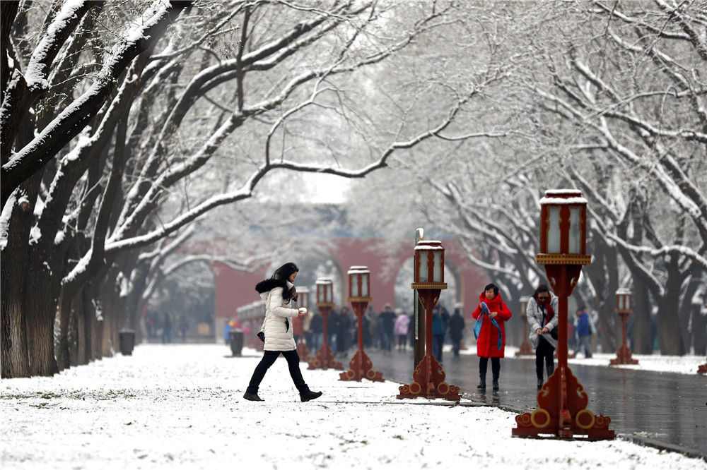 2019年11月30日,北京,天壇公園里觀雪賞景的市民絡(luò)繹不絕。喬?。垐D像/視覺中國