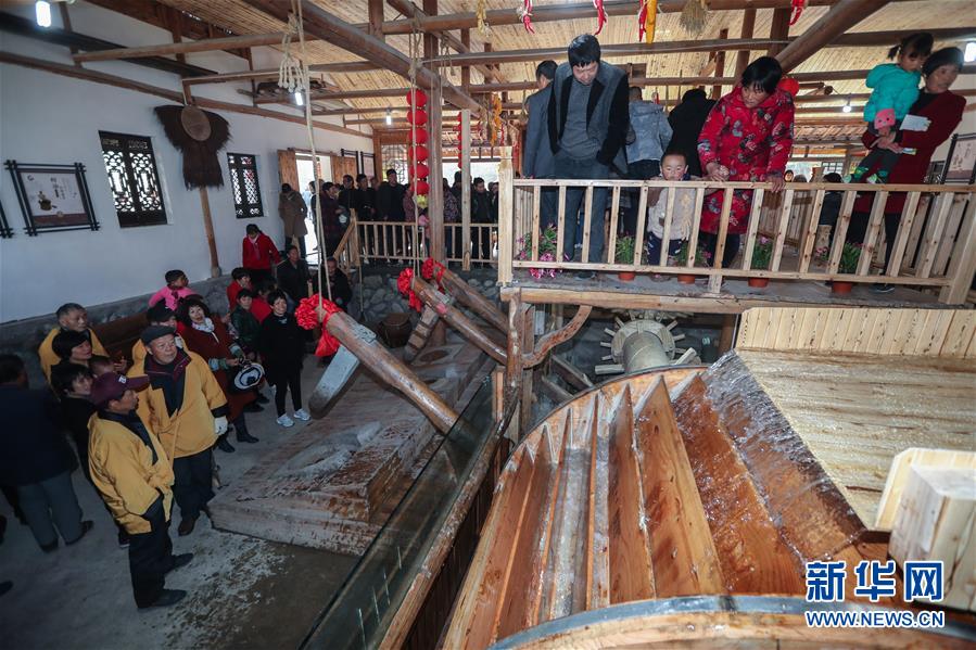 12月15日,游客在老油坊內(nèi)觀看古法榨油。