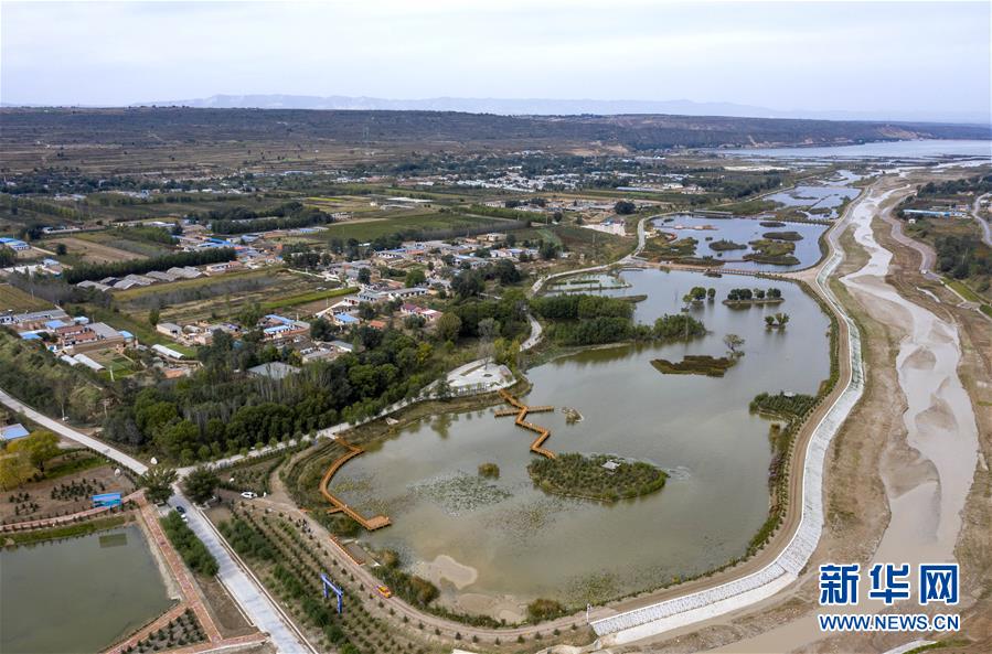 寧夏固原市原州區(qū)境內(nèi)的清水河流域在進(jìn)行防洪加固和人工濕地工程建設(shè)(10月10日無人機(jī)拍攝)。 新華社記者 馮開華 攝