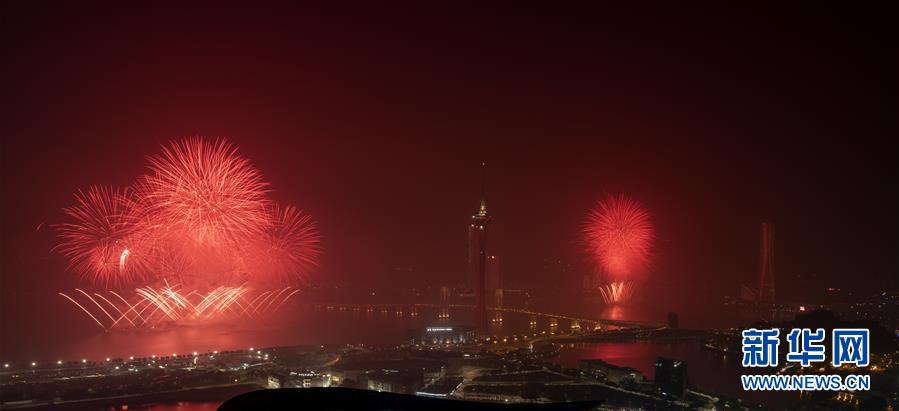 12月22日,煙花在澳門上空綻放。當(dāng)晚,澳門與珠海首次聯(lián)合舉行煙花匯演,慶祝澳門回歸祖國20周年。新華社記者呂小煒攝
