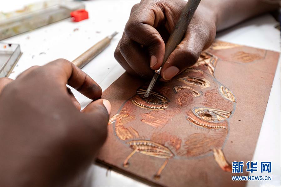 12月20日,在肯尼亞內(nèi)羅畢庫奧納藝術(shù)中心,一名藝術(shù)家在工作室內(nèi)創(chuàng)作作品。 新華社記者 王騰 攝