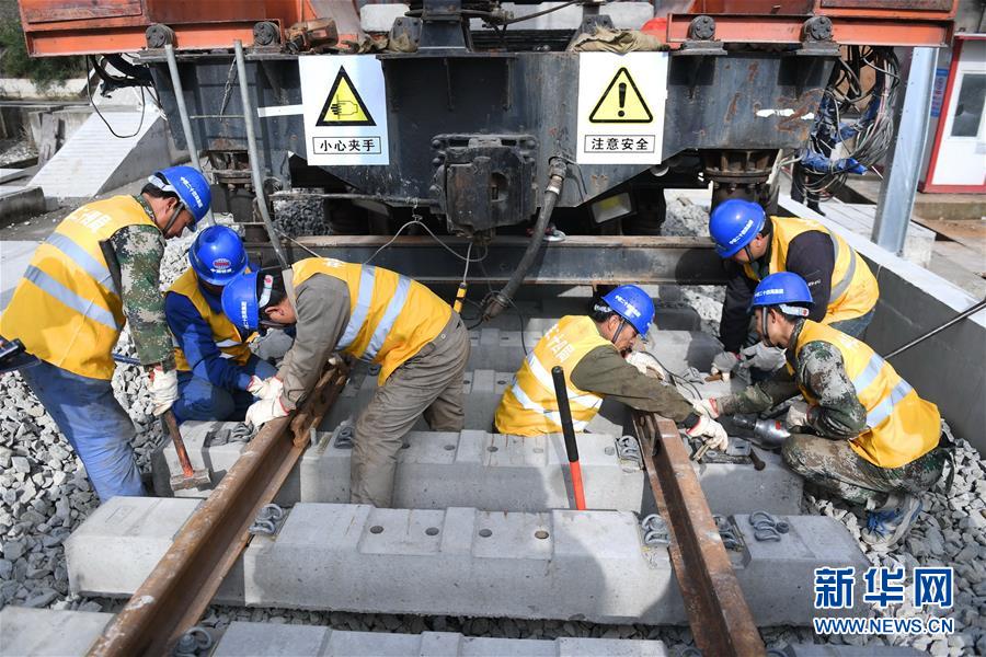 12月22日,中鐵二十四局工作人員在平潭海峽公鐵大橋鋪軌施工現(xiàn)場進(jìn)行鋪軌作業(yè)。新華社記者林善傳攝