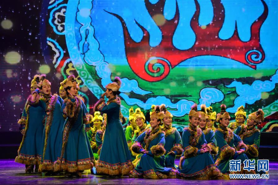 12月22日,演員在表演舞蹈《達(dá)斡爾民間呼號(hào)表演》。 新華社記者 徐欽 攝