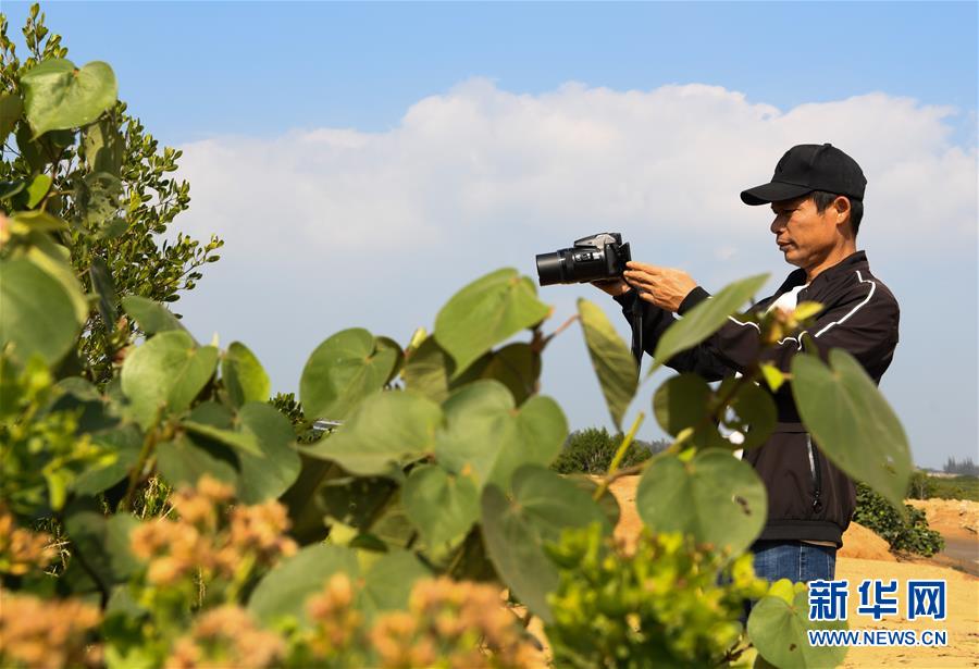 海南新盈紅樹林國家濕地公園巡護員兼監(jiān)測員羅理想在濕地公園內(nèi)拍攝紅樹林(12月11日攝)。 羅理想2006年起開始參與紅樹林濕地的保護工作,近年來他參加了很多關(guān)于濕地的培訓(xùn)。2016年,羅理想在工作中監(jiān)測到極危鳥種勺嘴鷸,當時有許多媒體做了報道,后來他又配合專家在濕地公園里發(fā)現(xiàn)了拉氏紅樹,“那個時候感覺自己的工作很有價值”,羅理想說。新華社記者楊冠宇攝