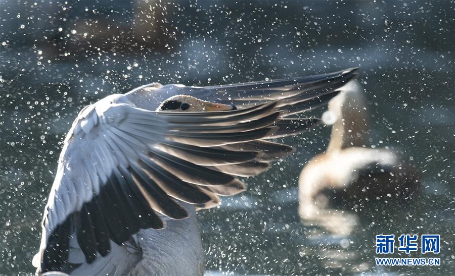 11月21日,候鳥在拉薩龍王潭公園水中嬉戲。新華社記者普布扎西攝