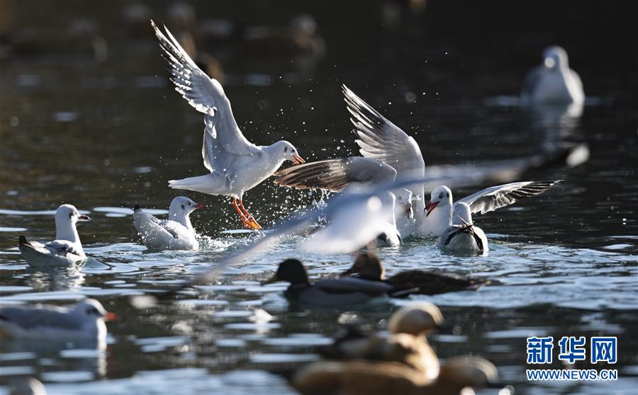 11月21日,候鳥在拉薩龍王潭公園水中嬉戲。時(shí)下,斑頭雁、紅嘴鷗等不少候鳥陸續(xù)飛抵拉薩河谷、雅魯藏布江沿岸等地避寒。新華社記者普布扎西攝