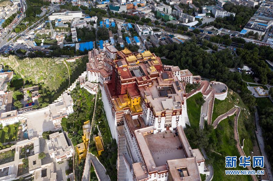 8月10日無人機(jī)拍攝的布達(dá)拉宮。新華社記者李鑫攝