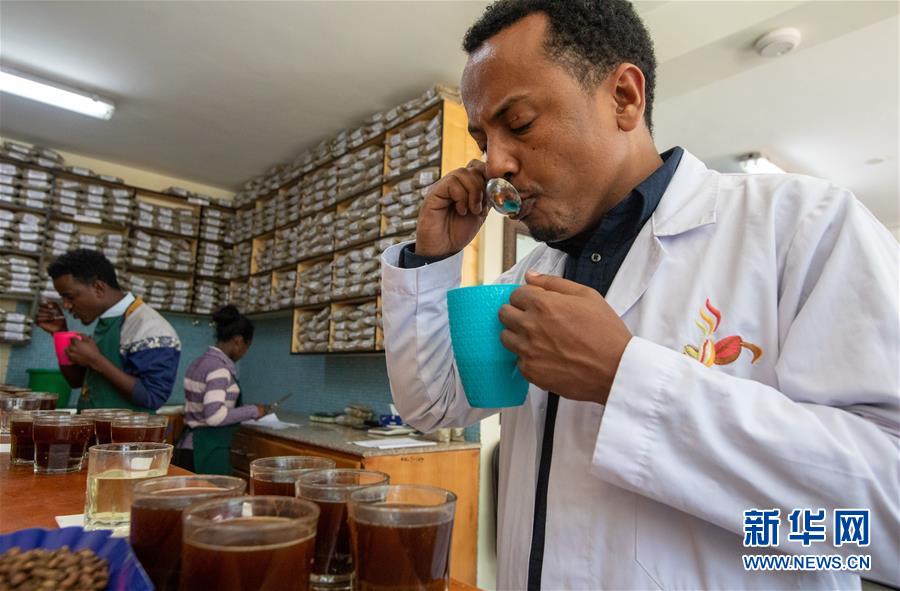 2019年10月23日,在位于埃塞俄比亞首都亞的斯亞貝巴郊外的卡辰什咖啡加工廠內(nèi),卡辰什咖啡質(zhì)量和市場總監(jiān)阿斯納克·卡薩在杯測室參與咖啡的杯測??ǔ绞部Х仁前H肀葋喿畲蟮目Х壬a(chǎn)商和出口商之一??ㄋ_表示,中國市場潛力巨大,埃塞俄比亞咖啡在中國市場的占有率不斷增長,進博會對埃塞俄比亞咖啡出口商來說是一個很好的機會。 新華社記者 張宇 攝