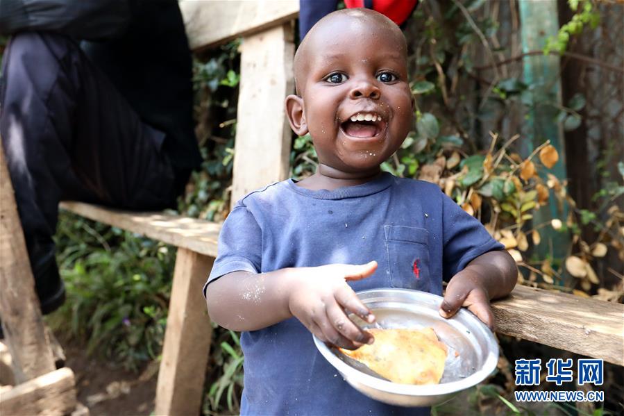 2019年9月1日,在肯尼亞內(nèi)羅畢的一個街邊攤位,一名兒童品嘗薩摩薩。肯尼亞及東非地區(qū)的傳統(tǒng)面食薩摩薩是一種三角形的油酥點心,由薄面皮包裹豆類、蔬菜及牛羊肉餡后,下鍋油炸而成。 新華社記者 王騰 攝