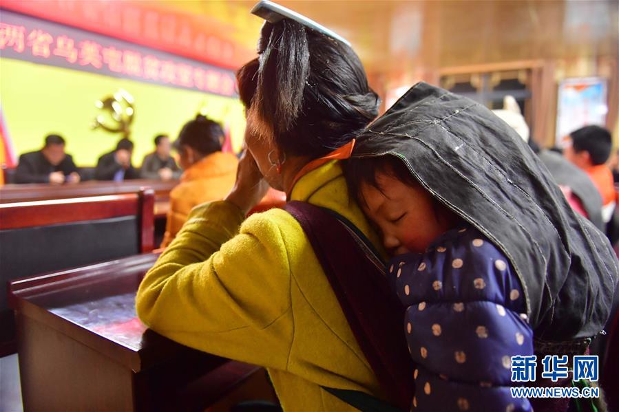 一名婦女背著小孩參加烏英苗寨脫貧產(chǎn)業(yè)會議(3月14日攝)。新華社記者黃孝邦攝