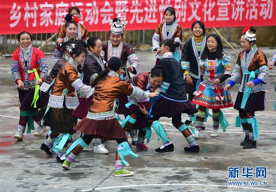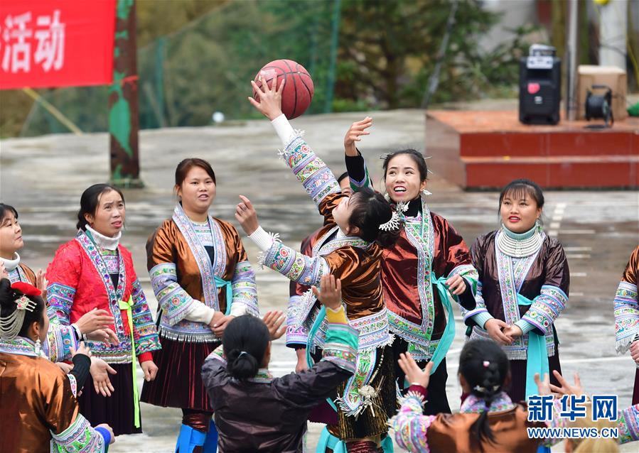 12月25日,苗族婦女參加趣味籃球比賽。 新華社記者 黃孝邦 攝