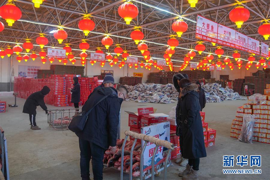 12月27日,在查干湖漁場超市,消費(fèi)者選購查干湖魚。新華社記者張楠攝
