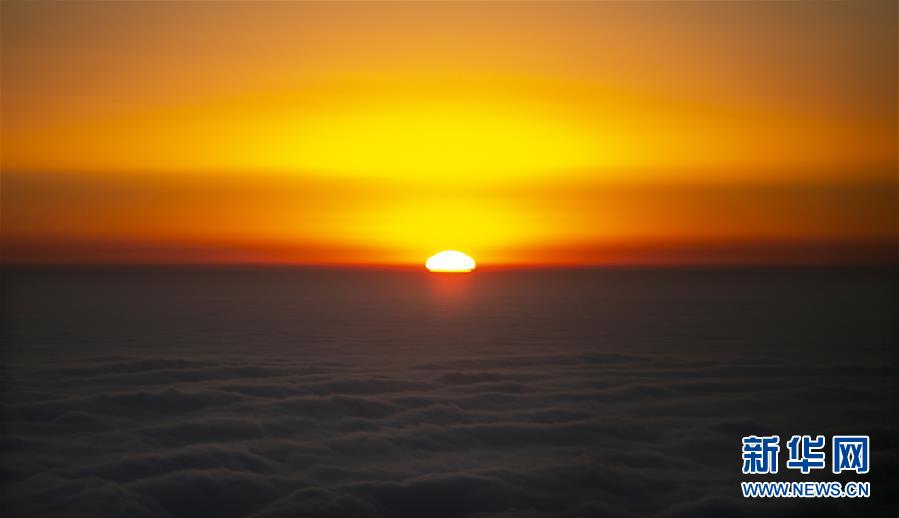 這是12月29日在四川省峨眉山金頂拍攝的日出。時(shí)值冬日,峨眉山銀裝素裹、宛如仙境。新華社記者李夢(mèng)馨攝