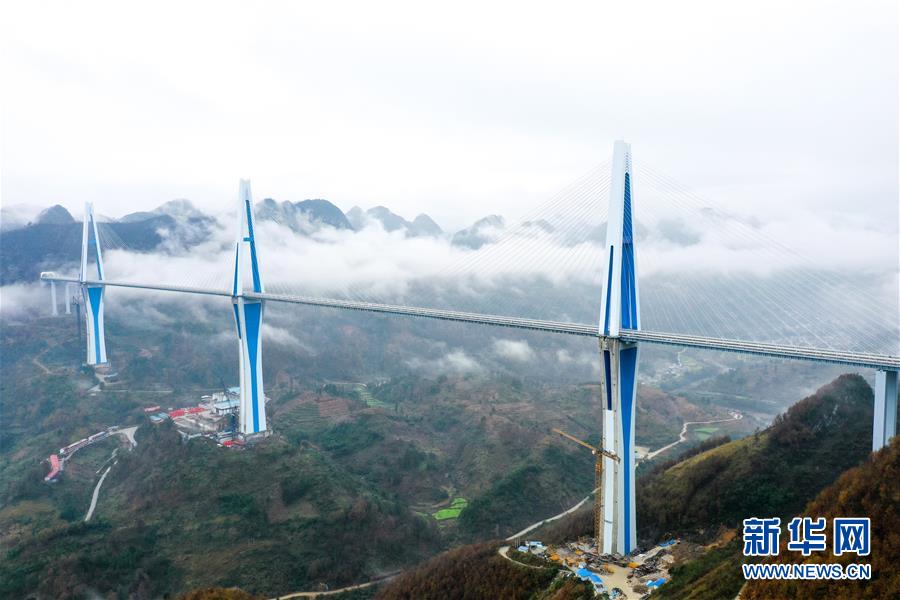 12月30日,云霧繚繞中的貴州平塘特大橋(無人機(jī)照片)。新華社記者劉續(xù)攝
