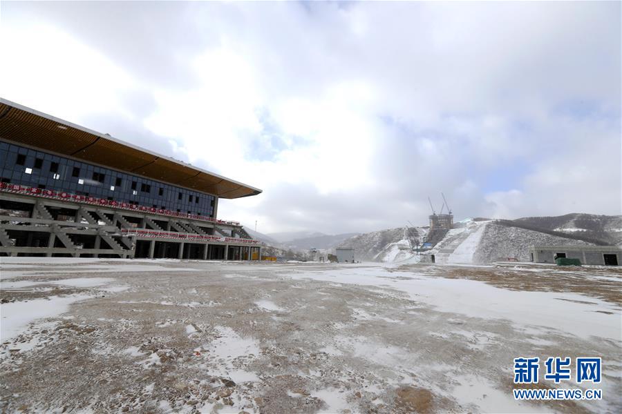 圖為國家冬季兩項中心場館技術(shù)中心(左)和國家跳臺滑雪中心“雪如意”(攝于12月10日)。新華社記者丁旭攝