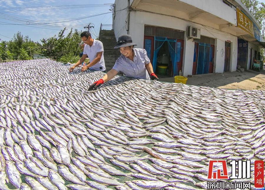 渤海灣畔海產(chǎn)豐收,成群魚蝦分揀后當(dāng)街晾曬,場面賽曬糧食